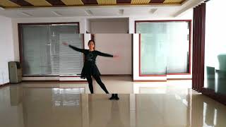9-10Turn ⅛ L stepping R to R side, reaching both arms up (9), pull both arms down (10) 12:00