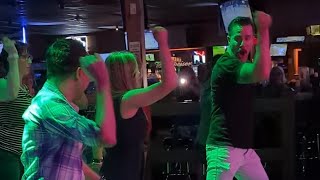 Styling: On the paddle turn, R arm is out to R side, L arm is up above head. Both hands twist as if opening a door knob with R hand and screwing in a light bulb with L (1-4). On the rock backs open the shoulders up as if a matador (5-8)