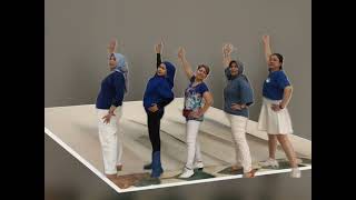 In a clockwise circular motion bring R arm down to stomach level & L arm up to head level (4)