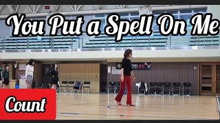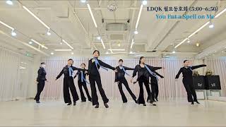 7-8&Step LF back facing 10:30 (7), Rotate your chest facing 4:30 and spread your fingers and pass them in front of your eyes (8), Hold on (&)