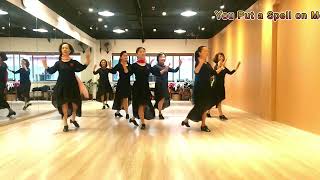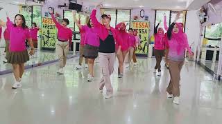 LE GRAND FINAL : After 18 counts (during the DIAMOND) on Wall 5 - Step RF fwd (facing 4:30) (3), Turn 1/8 L stepping LF to L side (facing 6:00) (&), Point RF back (a), Turn around with a ½ turn R – weight is on the LF and spread your fingers and pass them in front of your eyes (facing 12:00) (4)