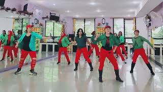 [1 – 8] Fwd R hitch L, Hold, out out LR, down L & roll arms from down and up, clap hands, slap RL thighs, clap hands over head and hitch L knee