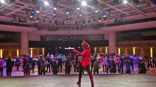 5-65) Turn 1/8 right stepping L forward; 6) Step R forward [1:30]
