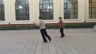 5-65) Turn ¼ right taking big step L to left [3:00]; 6) Drag R toward L