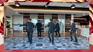 [33 – 40] Back LRL with sweeps, behind side cross ¼ R, HOLD, ball cross behind 1/8 R, HOLD 1 – 3Step L back sweeping R out to R side (1), step R back sweeping L out to L side (2), step L back sweeping R out to R side (3) … Styling: make your 3 steps back energetic and bouncy 7:30 4&5Cross R behind L (4), turn 1/8 R stepping L to L side (&), turn 1/8 R crossing R over L (5) 10:30 6&7 – 8HOLD (6), step L to L side (&), turn 1/8 R crossing R behind L (7), HOLD (8) 12:00