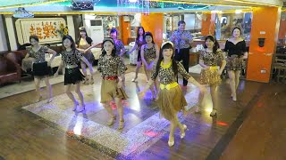 5 6Step Right forward to Right diagonal, Touch Left next to Right as you clap hands
