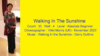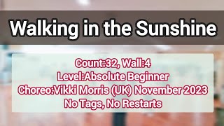Walking In The Sunshine er en let og smilende 32/4 absolute beginner-dans. Trinene er enkle og ligetil, hvilket gør dansen til et oplagt valg for helt nye dansere. Stemningen er munter og ukompliceret – som en gåtur i solen.