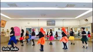 7&8Turn 1/8 L stepping L fwd (7), step R fwd (&), step L fwd (8) …