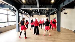 1&2RF step right and bump R hip right (1), Bump L hip left (&), Bump R hip right (2).
