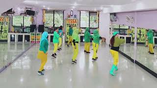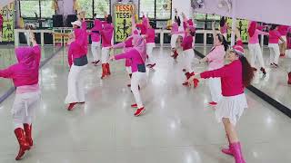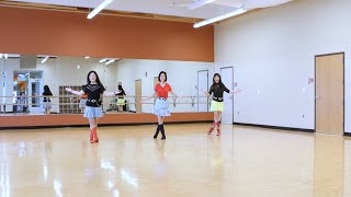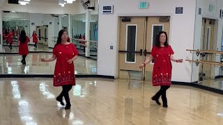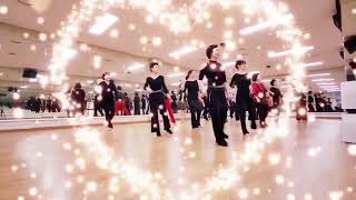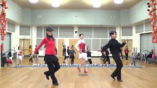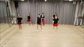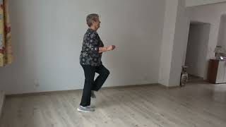 7-8Clap hands, touch left behind right looking right clicking right hand to right