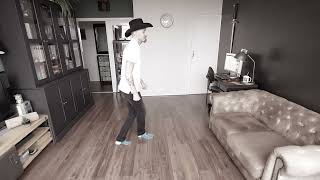7-8Make a 1/4 turn L and step back on LF, Drag R heel towards LF (now facing 9:00)