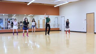Section 4 (Counts 25-32) V STEP (w/claps optional), PIVOT, KICK, STOMP STOMP