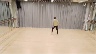 &3,4Ball of LF step next to RF and back, RF cross over LF, ¼ turn L and LF step forward (3:00)
