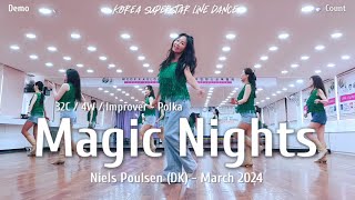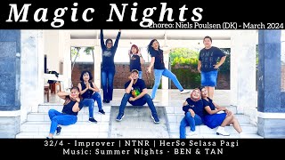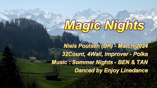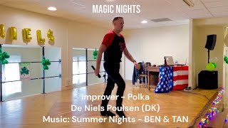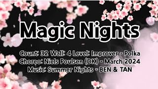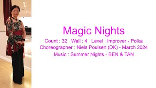 Magic Nights er en sprudlende og iørefaldende 32/4 improver polka, hvor Niels Poulsen (DK) lader polkaens klassiske energi møde poppens lethed. Dansen byder på skarpe retningsskift, hurtige vægtskift og et smittende tempo, der indfanger musikkens festlige puls. Det er en koreografi, der både udfordrer og begejstrer – et hit på ethvert gulv, hvor glæde og tempo er i højsædet.