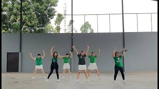 1-2-3-4RF step side & sway R, sway L, sway R, sway L (wave your arms)