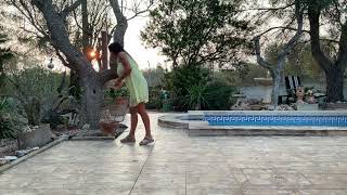 OUT OUT, SIDE SHUFFLE, SYNCOPATED JAZZ BOX ¼ TURN, STEP LOCK STEP