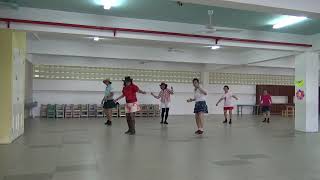 Note: on wall 5 there’s a small step change. Rather than doing the walk around, you turn ½ R stepping onto R on count 5, R hand goes forward palm facing out in a “STOP” motion. Hold counts 6-7. 06:00