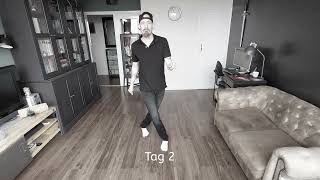 [1-8] R Step + L Full Spiral, Run L-R-L, R Step + L Sweep, 1/4 L Partial Diamond, R Step (Prep), R 5/4 Pencil Turn 12:00