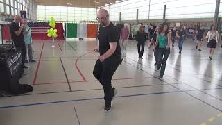 7 – 8While being a bit bouncy in knees and upper body: Walk forward on RF (7), LF (8). (Make it cool!) ;-)