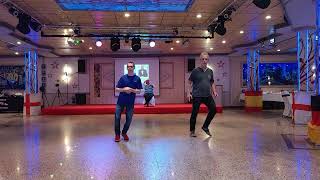 1-2Step RF behind LF and turn 1/8 left(3:00), Step LF left(2)