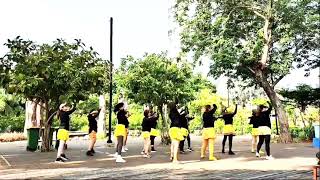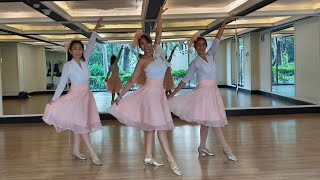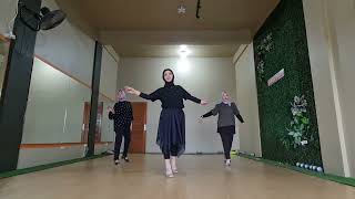 6-7-8LF gather next to RF and bend both knees, RF step to the R side with a sway to the R side, LF sway to the L side (04:30)