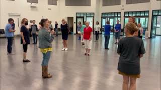 Contra End: Wall 15 - dance 16 cts - step forward R, do quick 1/2 pivot left (L) to