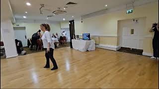Cross, Monterey 3/4 Turn R, Samba Step, 1/8 L Step Fwd w/Hitch, Back Sweep, Back Sweep, Sailor 1/2 L