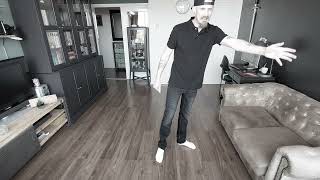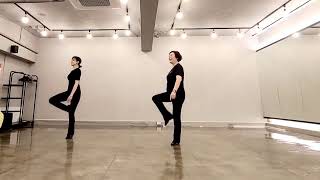 a5Step left next to right, Rock forward on right bending left knee and hooking left behind right[1:30]