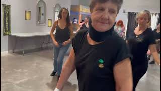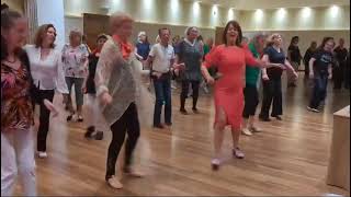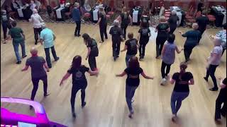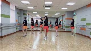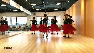 ENDING: Wall 7 begins facing [10:30]. Dance 22a counts, then ½ hinge turn right taking long step on right to right side.