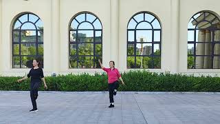 1a2¼ right stepping forward on right, ½ right stepping back on left, ¼ right stepping right to right side [3:00]