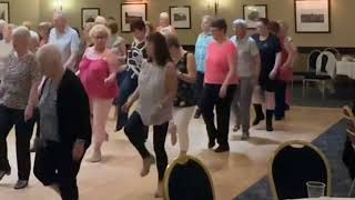 6-8bounce heels twice making ½ turn Left on count 6 and 7, flick back Right (3)