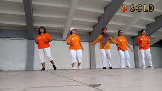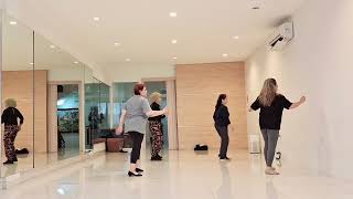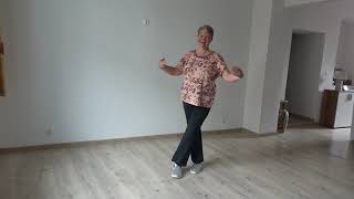 5 - 6Step R next to L, swing both arms out to each side of body (5), Step L next to R, cross arms in front of body (6) 9:00