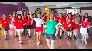 7 - 8Step R next to L, swing both arms out to each side of body (7), Step L next to R, cross arms in front of body (8) 9:00