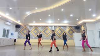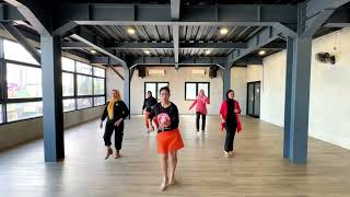 (On last beat - count 9; place L hand on hip and make a “gun” with right hand thumb and 2 fingers then shoot fwd to finish)