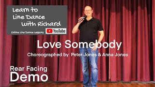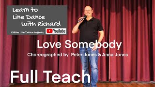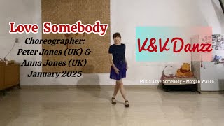 Love Somebody er en følelsesladet og moderne 32/4 intermediate-dans, hvor Maggie Gallagher (UK) forener teknisk elegance med dyb musikalitet. Koreografien bevæger sig mellem kontrollerede vægtskift, bløde drej og præcise overgange, der lader danseren udtrykke hele følelsesregisteret i Moncrieffs stærke vokal. Det er en dans, der kræver både teknik og nærvær – men som belønner med en sjælden intensitet på gulvet.