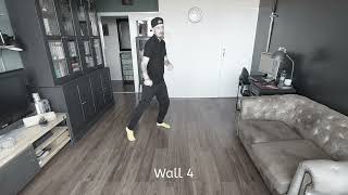 56Turn 1/4 to R stepping RF Fwd (5), Turn 1/2 to R stepping RF back (6) (7:30)