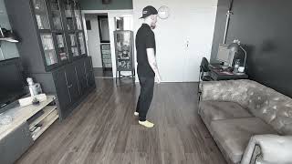 56Turn 1/4 to R stepping RF on side (5), Turn 1/4 to R stepping LF on side (6) (12:00)