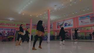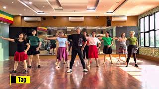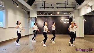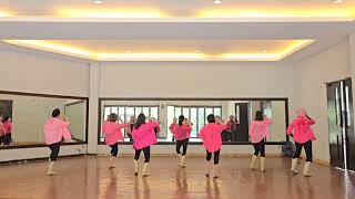 7-8Cross both arms at waist level transferring weight back on left and pop right knee, slap hands back on hips