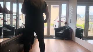 1 – 2Step Right forward. Turn 1/2 Right stepping Left back (7.30).