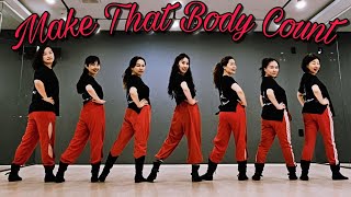&1 2Step LF next to RF on ball, Step RF on R side, Hold (Optional: Body Roll)