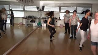 7 8Turn 1/2 to R stepping RF Fwd, Turn 1/2 to R stepping LF back