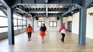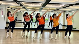 Ending: Finish wall 6: Step R to R side stretching R arm up with R hand fisted (lyrics: It’s a revolution) 12:00