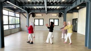 1&2&34R heel fwd - RF close to LF - LF heel fwd - LF close to RF - R heel fwd - clap