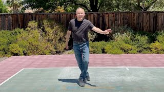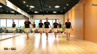 LF step backwards, hold, RF rock backward, recover on LF, kickball step forward, hook behind LF, unwind ½ over right. 1LF step backwards. 2Hold. 3RF rock backwards. 4Recover weigh on LF. 5Kick RF forward. &RF next to LF. 6LF step forward. 7RF hook behind LF. 8Turn ½ over right, weight on LF.