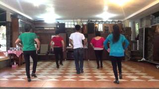 RIGHT VINE, DIAGONAL HEEL/CLAP, LEFT VINE, DIAGONAL HEEL/CLAP1-4Step right to side, cross left behind right, step right to side, touch left heel diagonally forward (clap)5-8Step left to side, cross right behind left, step left to side, touch right heel diagonally forward (clap)STEP TOGETHER, DIAGONAL HEEL/CLAP, STEP TOGETHER, DIAGONAL HEEL/CLAP9-10Step right together, touch left heel diagonally forward (clap)11-12Step left together, touch right heel diagonally forward (clap)SWIVEL HEELS RIGHT, LEFT, RIGHT, CENTER13-14Step right together and swivel heels right, left15-16Swivel heels right, centerSTOMP, STOMP, KICK, KICK, BALL-CHANGE, STOMP, KICK, KICK17-18Stomp/touch right together, stomp/touch right together19-20Kick right forward, kick right forwardKicks are done with a forward and downward pumping action&21Step right together, step left in place22Stomp/touch right together23-24Kick right forward, kick right forwardKicks are done with a forward and downward pumping actionFORWARD, HOOK BEHIND, BACK, HITCH, BACK, HITCH, FORWARD, SCUFF/TURN25-26Step right forward, hook left behind right27-28Step left back, hitch right knee29-30Step right back, hitch left knee31-32Step left forward, brush right heel forwardTurn ¼ left to start the dance again (9:00)REPEAT