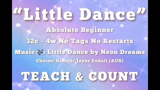 I choreographed this dance as a fun warm up dance where everyone can step onto the floor at the start of your session. By adding in the arm movements and bending knees for section 4 the intention is to warm up our entire body for the dancing ahead. I do hope you enjoy, please get in touch with any questions or if you spot any issues with this stepsheet. Most importantly, thanks so very much for your interest in my ‘Little Dance’!