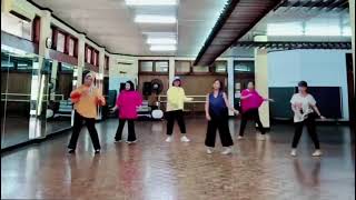 ¾ Turn Right, Samba Step, Cross, Side, Behind, Side, Cross.