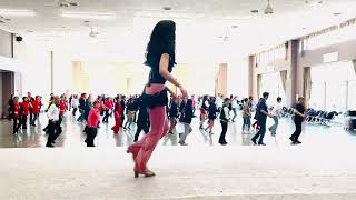 S2 OUT-OUT, SNAP, HIP ROLL×2, 1/4 TURN R, FWD×2