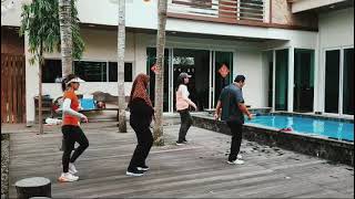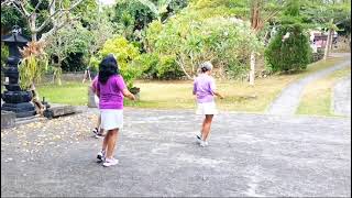 5-6-7-8Step L behind R - Step R to side - Step L over R - Hold