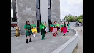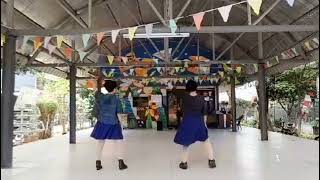 5-6-7-8Step L forward - Turn 1/4 right, step on R - Cross L over R - Hold